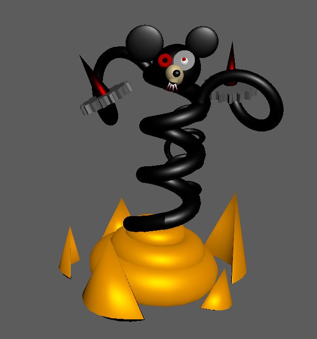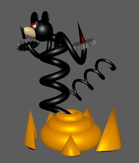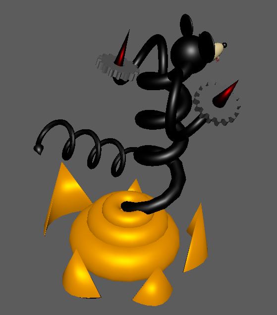 Create an abstract Mickey Mouse by simple geometric shapes. You need to use minimum 5 Primitive Objects available in Maya. Apply a material which suits to the character.
